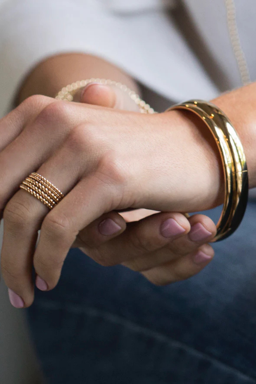 A 14kt gold-filled bangle with a slide hinge lock clasp