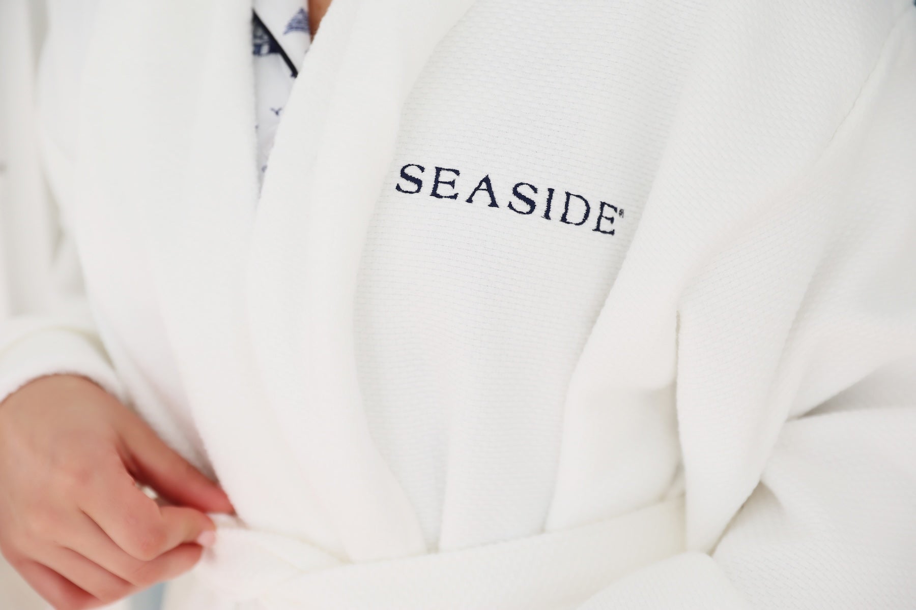 Crisp, cozy, and timeless. Our unisex robe offers hotel-quality softness with a relaxed, easy fit. Made for mornings on the porch and evenings unwinding. Luxe woven exterior with an absorbent terry interior. Unisex and one-size-fits-all, perfect for any guest.
