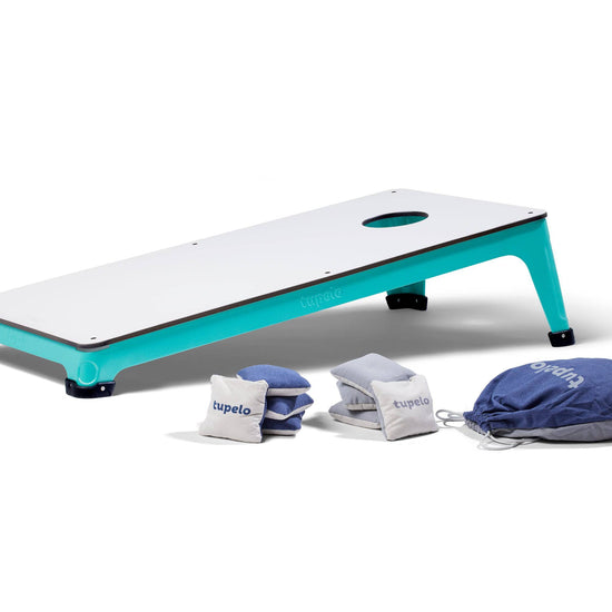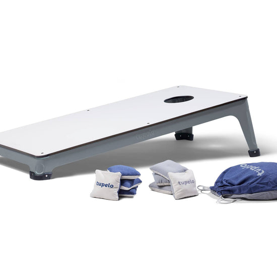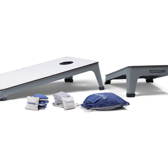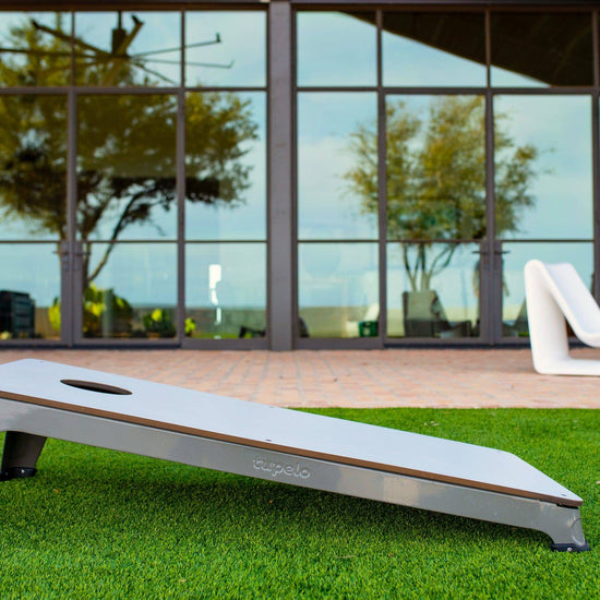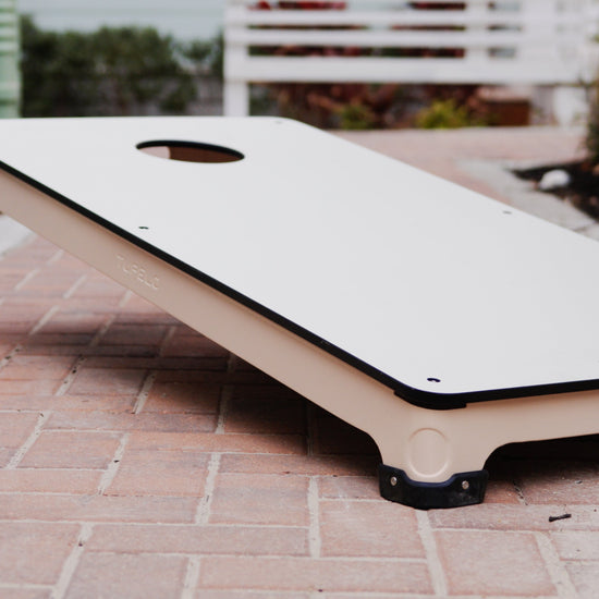 We've combined elevated design, all-weather materials, and innovative construction to create the ultimate all-weather cornhole set. Featuring an elegant, low profile frame, all-weather composite boards, and a patent-pending shock absorption system for superior cornhole gameplay and sound. Celebrated by cornhole professionals and discerning homeowners alike, this is the last all-weather cornhole set you'll ever need. This cornhole set can be left outside all season. Cornhole Set customization is available. INCLUDES: