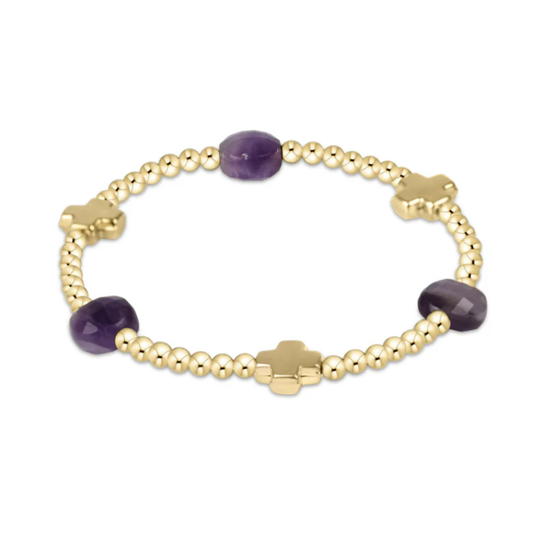 Enewton Signature Cross Admire Gold Pattern 3mm Bead Bracelet - Amethyst