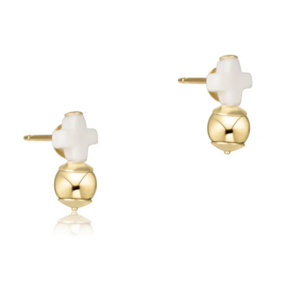 14kt gold-filled earring post, signature cross off-white, 8mm gold ball