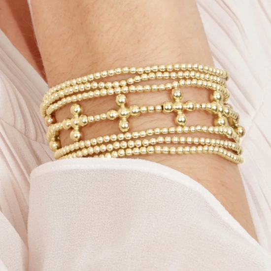 Enewton Signature Cross Sincerity Pattern 2.5mm Bead Bracelet - 4mm Gold Cross